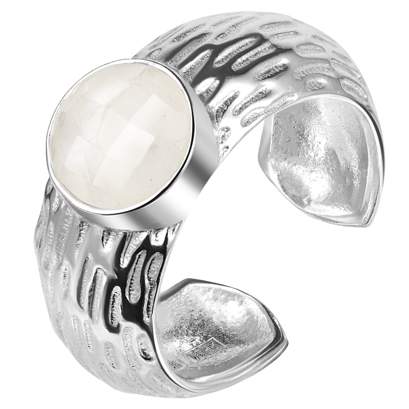Безразмерное кольцо удобно садится на палец, подстраиваясь под владельца, как талисман, нашедший свою хозяйку. Камень адуляр известен своими эзотерическими свойствами: он усиливает интуицию, защищает в путешествиях — как внешних, так и внутренних, помогает идти своим путём и принимать правильные решения.