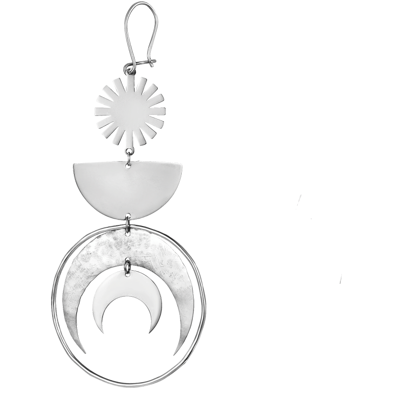 Моносерьга Женская сила, сочетающая символы луны и солнца, поможет акцентировать то, что нужно в данный момент. Например, у нашей Лидии на фото: легкость, теплую энергию и сияние женщины, как согревающего светила, радующего и дающего жизнь всему сущему. Луна же выйдет на первый план, когда нужно будет проявить мудрость, спокойствие и прислушаться к интуиции. Вместе они гармонизируют энергоцентры и состояние.