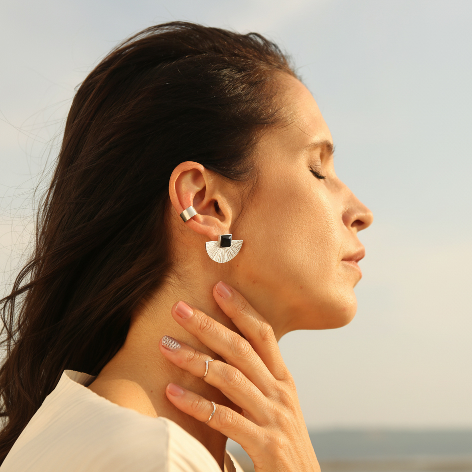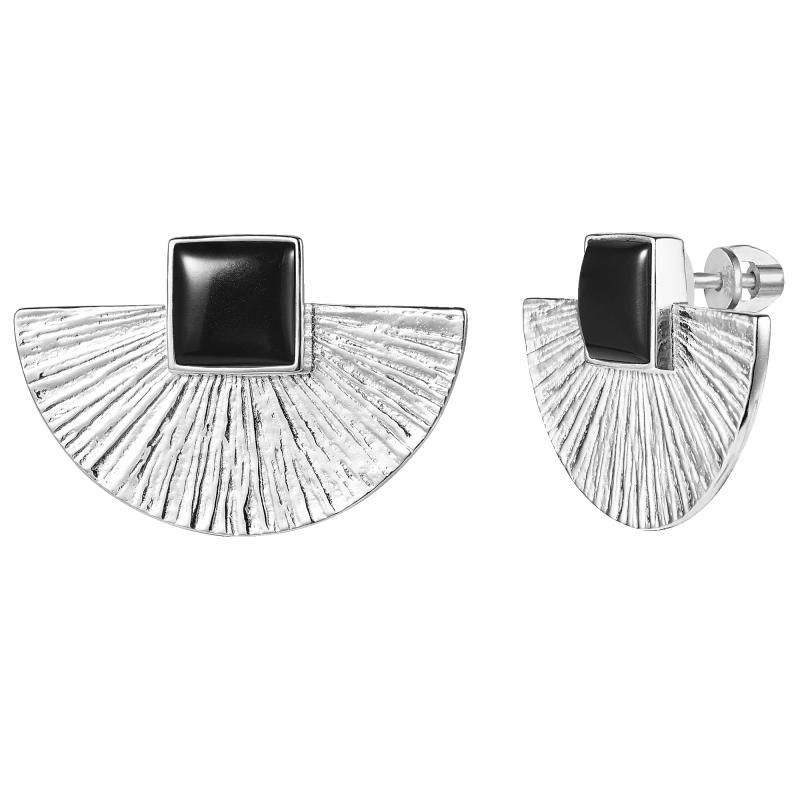 Оникс ценят за глубокий чёрный цвет и аккуратный блеск: квадратная огранка даёт чёткие линии, а сам камень делает образ собранным и “дорогим” по настроению. Эти серебряные гвоздики легко сочетать с базовым гардеробом, деловым стилем и монохромными комплектами.