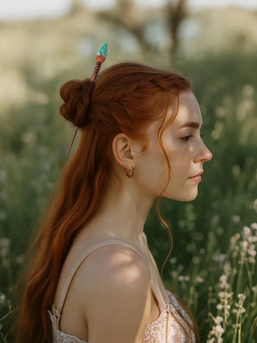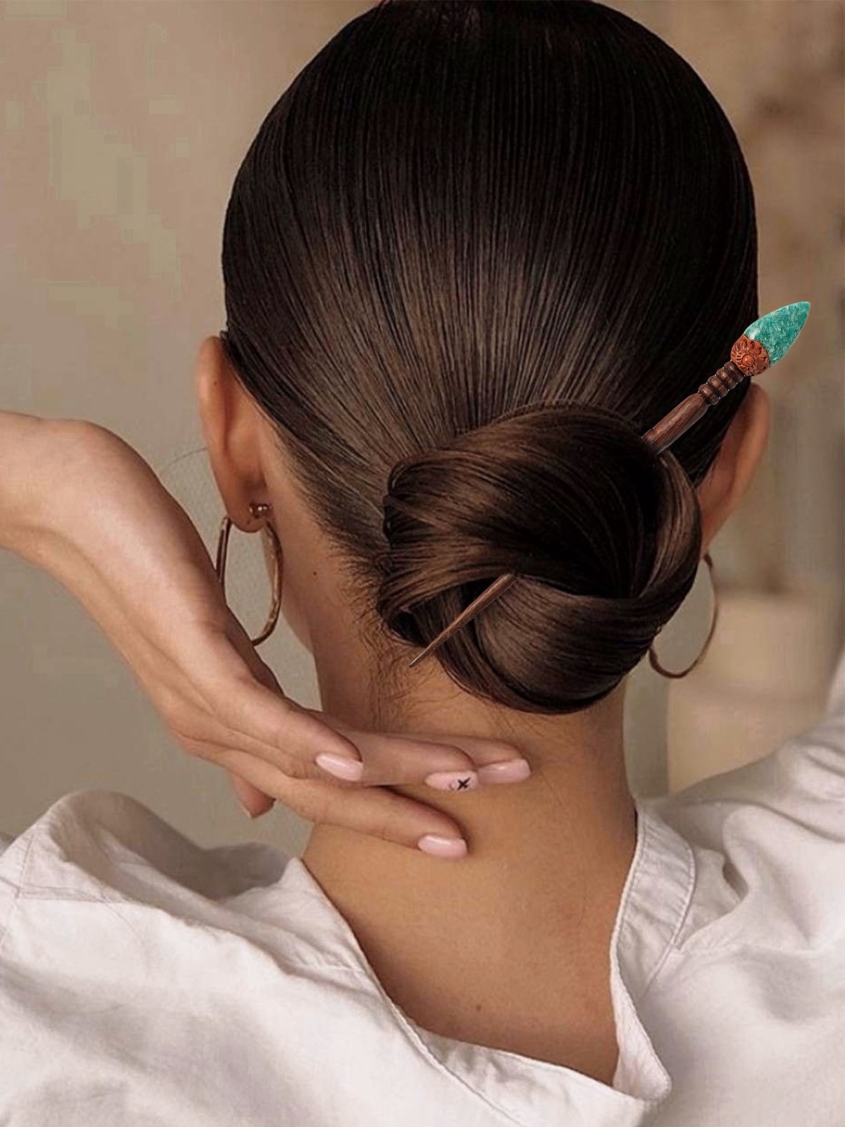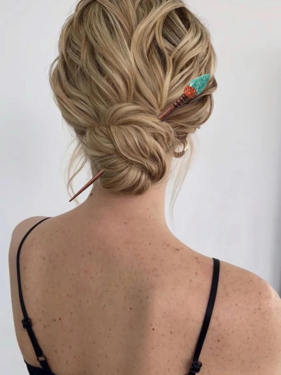 Заколка-шпилька для пучка волос в бохо стиле с натуральным камнем