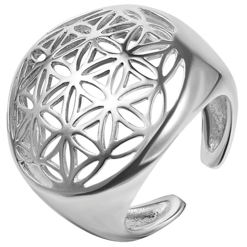 Безразмерное, широкое кольцо из серебра с символом Цветка Жизни — мощный эзотерический перстень, подходящий как для женщин, так и для мужчин.