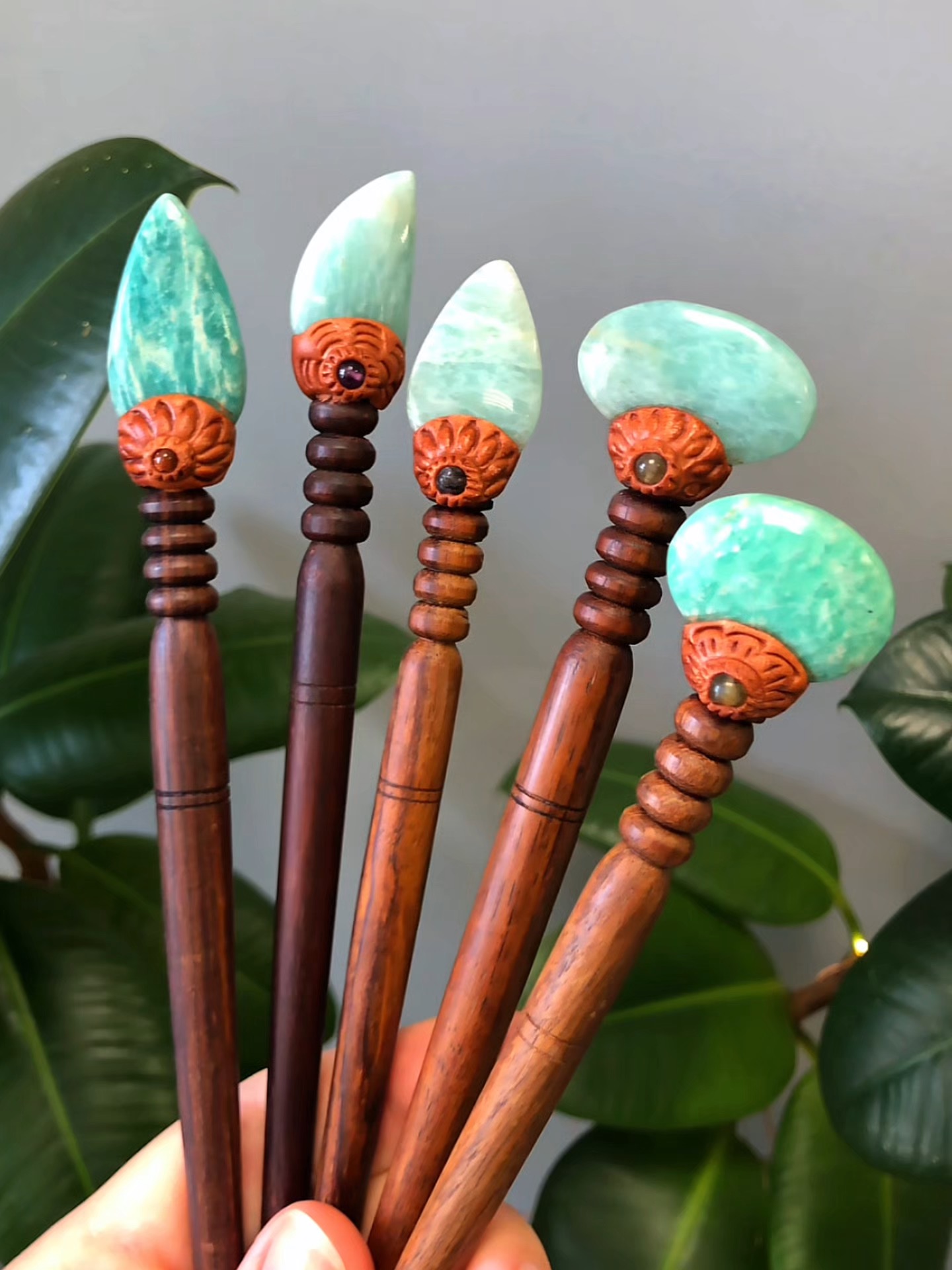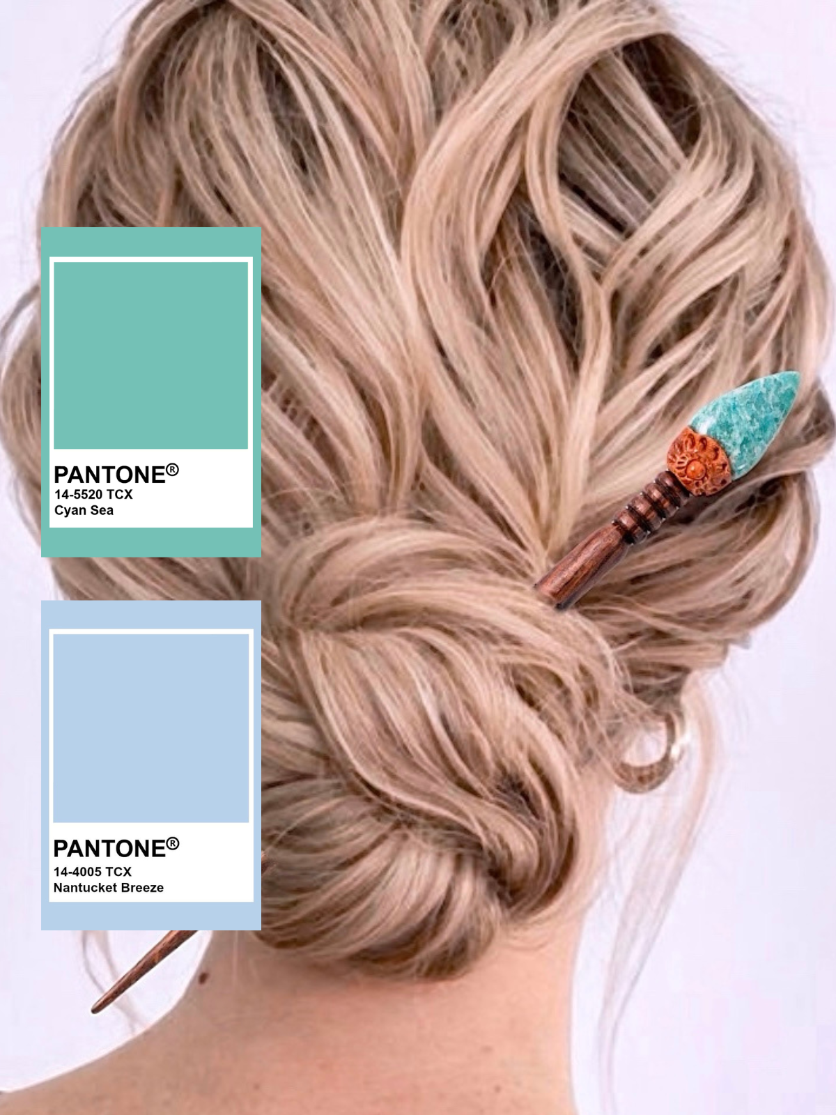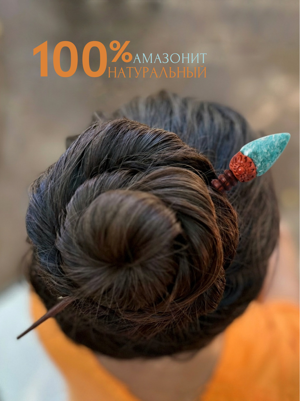 Заколка-шпилька для пучка волос в бохо стиле с натуральным камнем